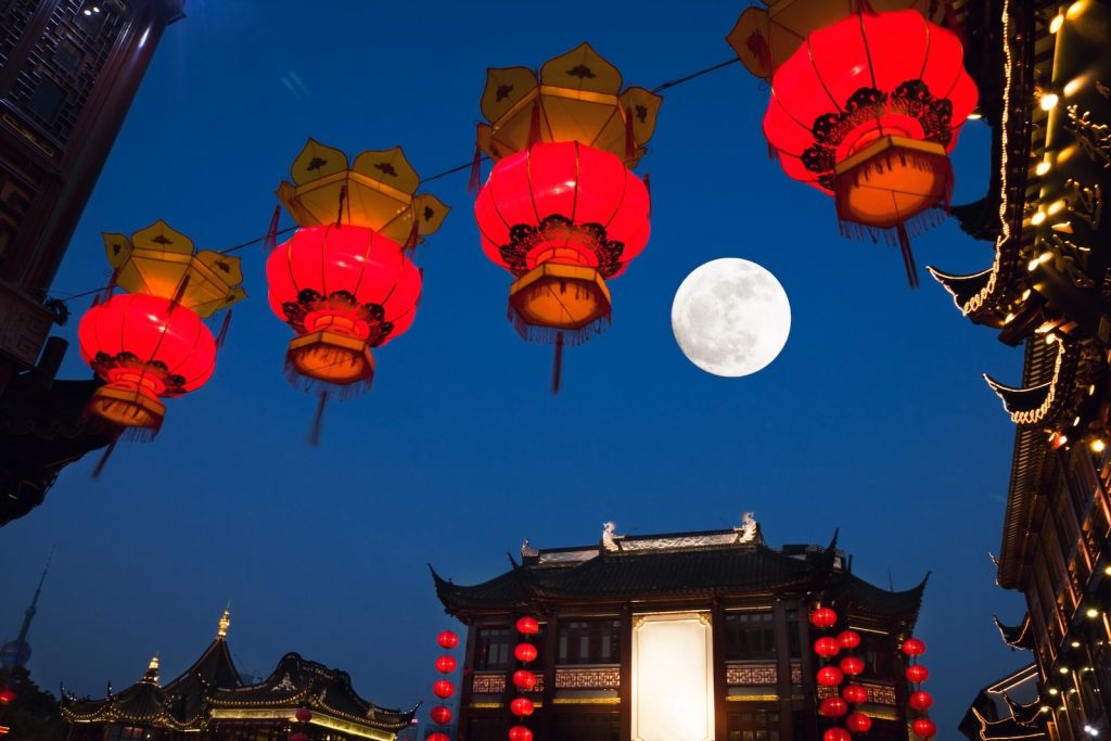 Der Mond leuchtet über einem Park in Shanghai (Foto: shutterstock); ein symbolkräftiges Bild für den Wunsch der Volksrepublik China, 2030 Menschen auf dem Erdtrabanten abzusetzen.
