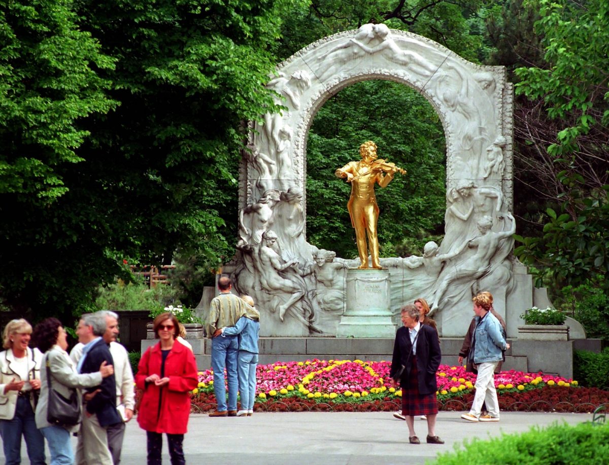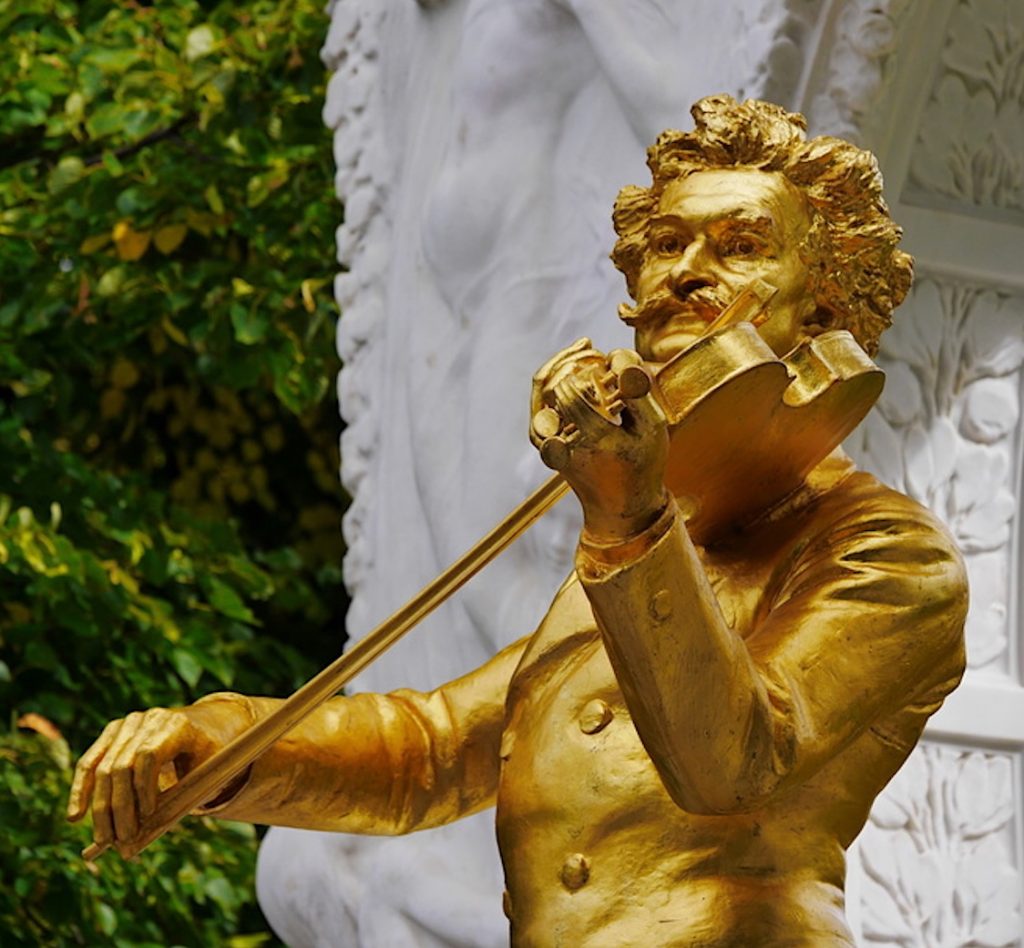 Bei meinem letzten, schon länger zurück liegenden Besuch in Wien, war es Pflicht, außer den „üblichen” Sehenswürdigkeiten wie Stephansdom, Rathaus, Hofburg, Burg-Theater, Staatsoper und verschiedene Museen auch den Stadtpark aufzusuchen. Dort stehen Denkmäler von Komponisten, die in der Walzer- und Musikstadt eine Rolle gespielt haben: unter anderen Franz Lehár, Franz Schubert, Anton Bruckner, Robert Stolz. Ein besonderer Blickfang ist die Statue von Johann Strauss (1825-1899), der als Walzerkönig von Wien vor allem durch die Operette Die Fledermaus Weltrum erlangt hat, aber mit unzähligen anderen leichtfüßigen Kompositionen die Herzen der Menschen eroberte.
