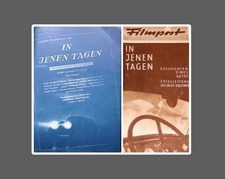 Die Geschichte eines Autos in dem Helmut Käutner-Streifen In jenen Tagen aus dem Jahr 1947 beschreitet einen außergewöhnlichen stilistischen Weg, um am Beispiel eines schrottreifen Autos die dramatischen Erlebnisse seiner Besitzer im „Dritten Reich“ darzustellen und sich mit der Geschichte Deutschlands zu beschäftigen. Der Regisseur bürgte dabei für Qualität, denn auch wenn Käutner nicht zum engeren Widerstand gezählt hatte, wahrte er als stiller Opponent Distanz zur Diktatur.