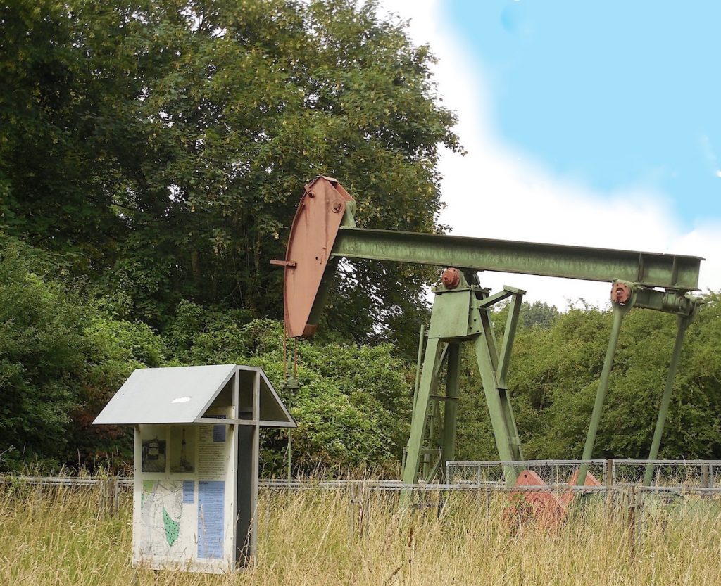 Ein Kontrast in der Nähe von Riedstadt-Goddelau. Dort wird hochwertiges Öl gefördert, wenn auch nur in kleinen Mengen. Die Idee, in dieser Region Öl zu fördern, liegt Jahrzehnte zurück. Nahe der Gemeinden Stockstadt, Goddelau, Erfelden, Gernsheim und Crumstadt wurden in den Dreissiger Jahren kleine Vorkommen entdeckt. Wegen mangelnder Rentabilität, aber auch wegen des Zweiten Weltkrieges, wurden die Probebohrungen eingestellt.