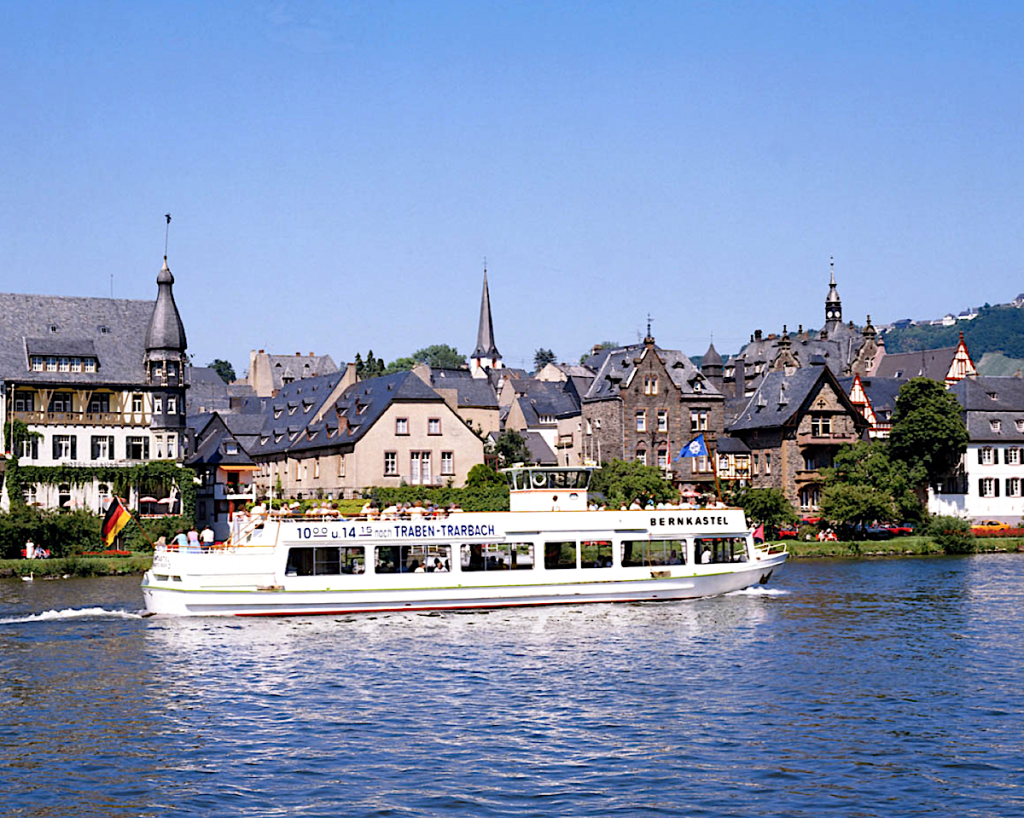 Nach dem Kinostück folgte das erste reale Moselerlebnis Anfang der Sechziger Jahre. Rückfahrt von einer Fußball-Berichterstattung in Esch-Sur-Alzette in Luxemburg. Ein Kollege und ich zuckeln im VW auf der Bundesstraße 53 in Richtung Heimat. Die Straße windet sich wie der Fluss, führt rechts oder links entlang des Gewässers; im Rückspiegel die verblassende Sonne. In Bernkastel-Kues geraten wir unerwartet in ein Winzerfest mit Jubel, Trubel, Heiterkeit. Dem fröhlichen Treiben können (und wollen) wir uns nicht entziehen. Herzliche Bekanntschaft mit netten Leuten für zwei Stunden.
