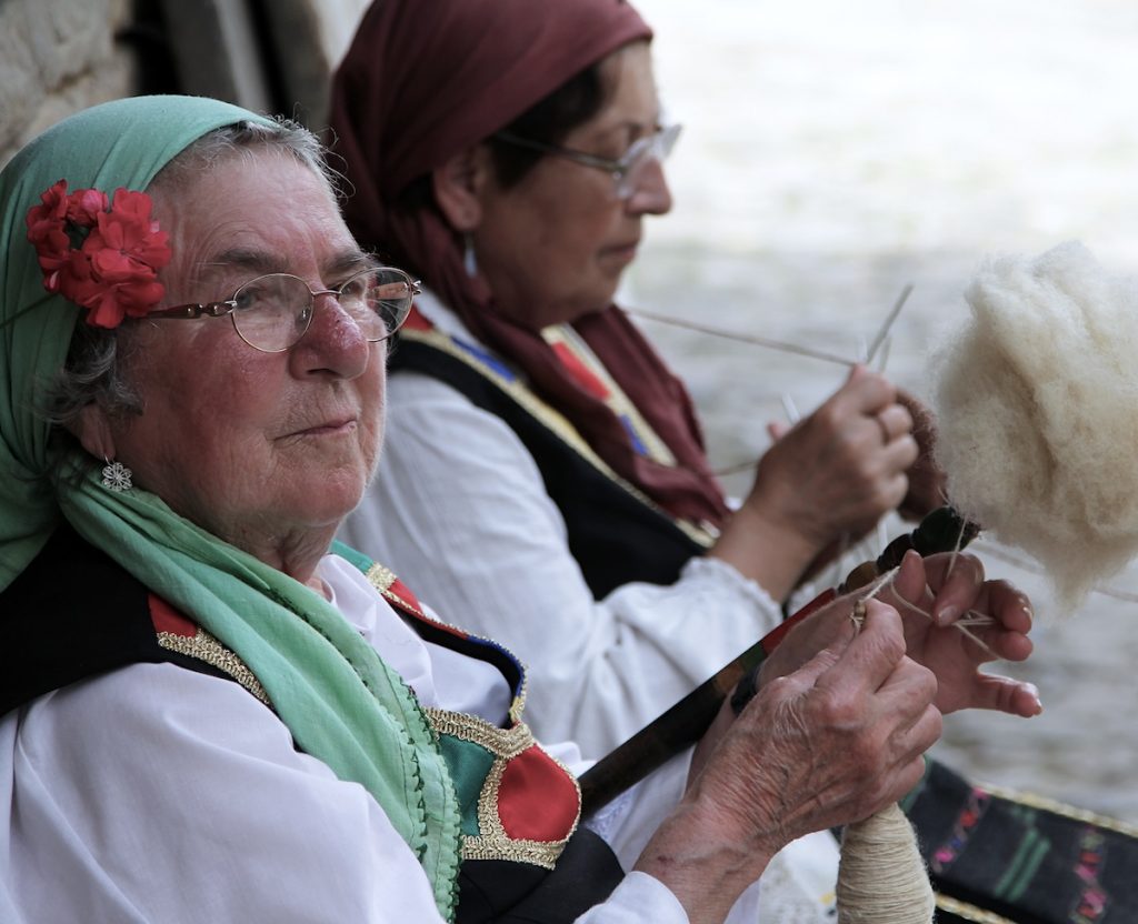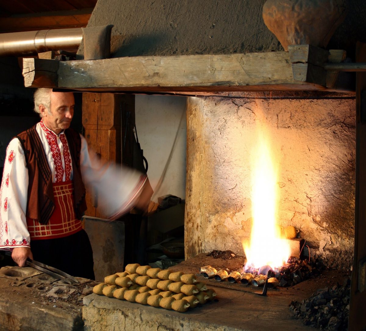 Wir erleben, wie Glocken und Tierschellen gegossen werden, sehen Töpfer bei ihrer filigranen Arbeit, beobachten Kürschner, schauen einem Schmied über die Schulter. Wohin das Auge blickt, ist Interessantes zu entdecken, wir sehen antike Webstühle, uralte Backstuben, Frauen mit einer Handspindel aus Rohwolle Strickfäden zwirbeln oder Wollsachen stricken; an einer Ecke steht ein knorriges Pferdefuhrwerk, ein Instrumentenbauer entlockt einer Flöte erste Töne.