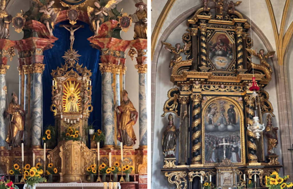 1224 wurde die Einrichtung zum Augustiner-Kloster, 1807 fiel sie in die Zuständigkeit des Benediktinerstift Muri in Gries bei Bozen. Dieses versieht auch heute noch die Seelsorge im Dorf, auch wenn das Hospiz schon lange nicht mehr existiert. Unabhängig davon ist die im 15. Jahrhundert im gotischen Stil umgebaute Wallfahrtskirche ein beliebtes Kulturziel. Im Inneren sind geschnitzte Barockaltäre und ein verglaster Rokokoschrein mit dem Gnadenbild „Maria mit dem Kinde“ zu sehen. Oft ist es ruhig hier, an Feiertagen geben sich Pilger die Türklinke in die Hand. Als wir dort ankommen, treffen gerade weitere Wanderer ein.