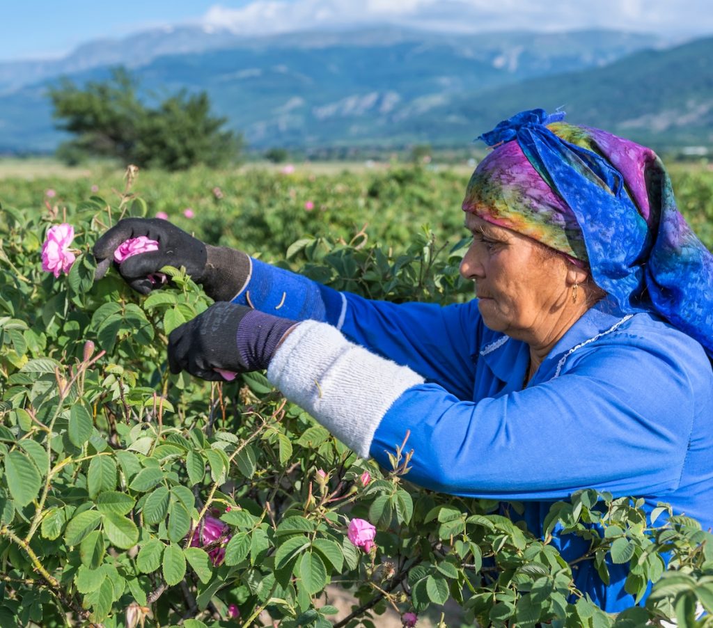 Mit meinem bulgarischen Bekannten Petar T. bin ich in einem uralten Lada in Bulgarien unterwegs. Wie sind auf dem Weg von der Hauptstadt Sofia ans Schwarze Meer. Es ist Ende Mai, die Sonne steht hoch und strahlt vom blauen Himmel. Mittagszeit in Karlovo, einem kleinen Städtchen im weltberühmten Rosental. Wir legen eine Rast ein. Ich wundere mich, dass auf den Feldern keine Erntehelfer oder -helferinnen zu sehen sind. Petar, der versonnen über die Landschaft schaut, klärt mich schmunzelnd auf: „Kein Wunder, das niemand zu sehen ist. Die Rosen müssen sehr früh morgens, noch vor dem Sonnenaufgang und einzeln mit der Hand gepflückt werden, weil der Ölgehalt dann am höchsten ist. Das erfordert nicht nur Geschick und Ausdauer, sondern ist harte Knochenarbeit.“