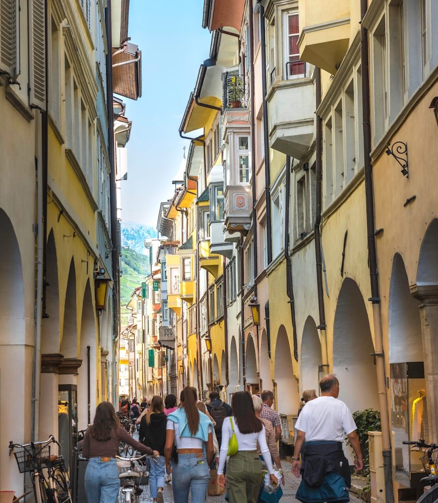 Eine Eigenart Bozens ist, dass in vielen Läden und Restaurants nur italienisch gesprochen wird, es aber auch Geschäfte gibt, in denen Deutsch gewissermaßen „Amtssprache“ ist. Zweisprachigkeit überwiegt, jedoch, hin und wieder ist Ladinisch zu hören. Diese Sprachvielfalt weist auf die komplizierte Geschichte Bozens hin. Wo knapp über 100.000 Menschen zusammenleben – von den täglichen Gästen abgesehen –, ergibt sich unter touristischen Aspekten buntes Leben wie von selbst, soziale Probleme mit eingeschlossen. Doch wo gibt es die nicht?